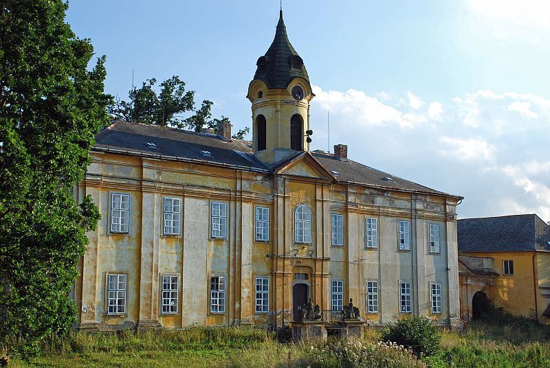 Venkovský barokní zámek, do dnešní podoby s válcovou věžičkou přestavěný na prahu klasicismu na přelomu 18. a 19. století.